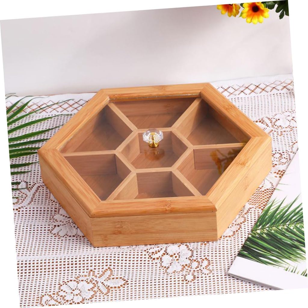 Package Include 1 x Storage box with lid Features - Size: 27.50X27.50X6.00cm/10.81X10.81X2.36inch Wooden Fruit Tray. - Material: Wood Storage Plate - ColorLight Brown Wooden Food Plate - Can be served as a snack plate, suitable for home, party, restaurant, hotel and much more Food Serving Tray. - Non- design on the bottom of the plate, evenly polished Wooden Fruit - After the precipitation of time, this basket will present classic and retro style Dried Fruit - Wood material food divided plate, seven portioned sections, sturdy and not easy to break Snack Dish. - The edges and corners are smoothly polished, and the touch feels comfortable without burrs Decorative Candy Goods InformationWooden Fruit Tray This item is food divided serving tray, which is made of wood material, fine structure, not easy to deform.Food Serving Tray Seven portioned sections, convenient to store vegetables, fruits, grains, cereals and favorites, A great snack plate for home