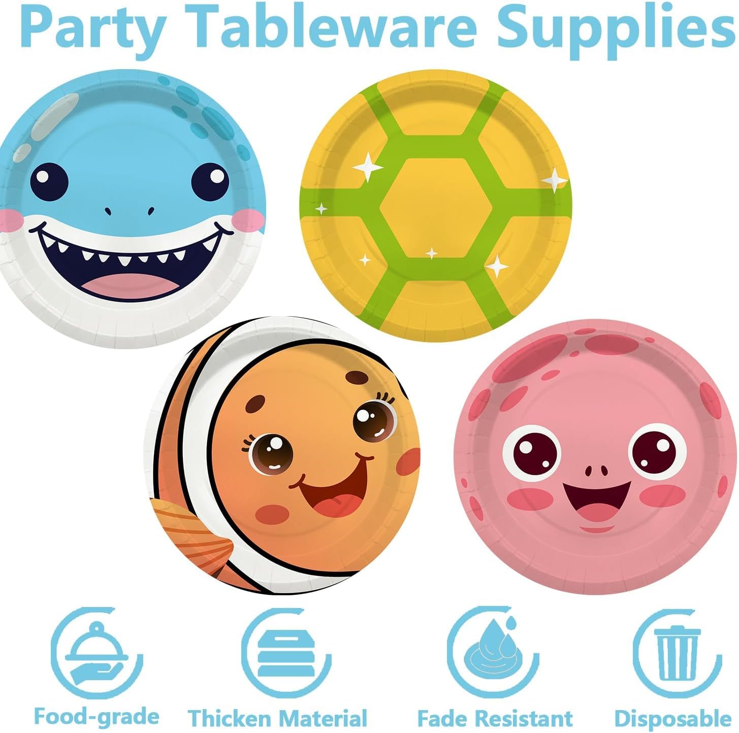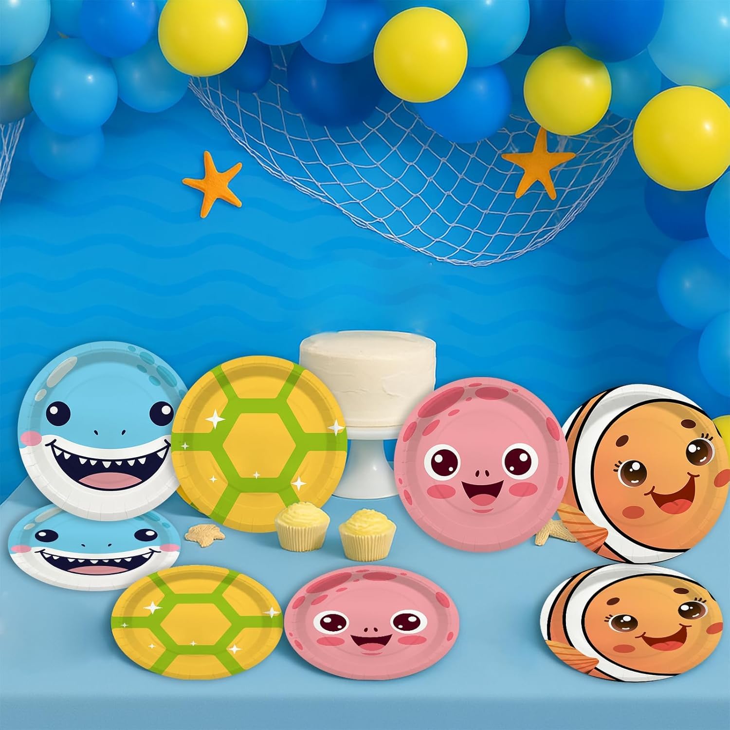 Under the Sea Party Decoration Ocean Birthday Paper Dessert Plates 7" Sea Animal Theme Tableware Underwater Creature Table Decor Supplies Baby Shower Ocean life Birthday Party Favor