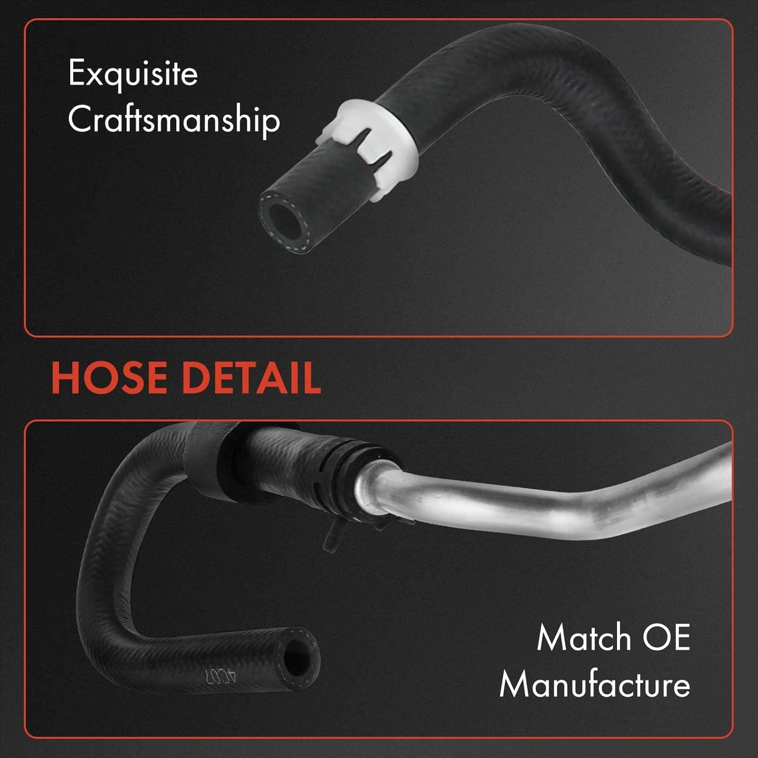 • [The Performance]: Hose Type: Power Steering Return Line Hose Assembly; Working Pressure: Up to 250 psi; Working Temperature: -40°C to 254°C; Material: Multi-Layer Rubber; Corrosion Resistant: Yes