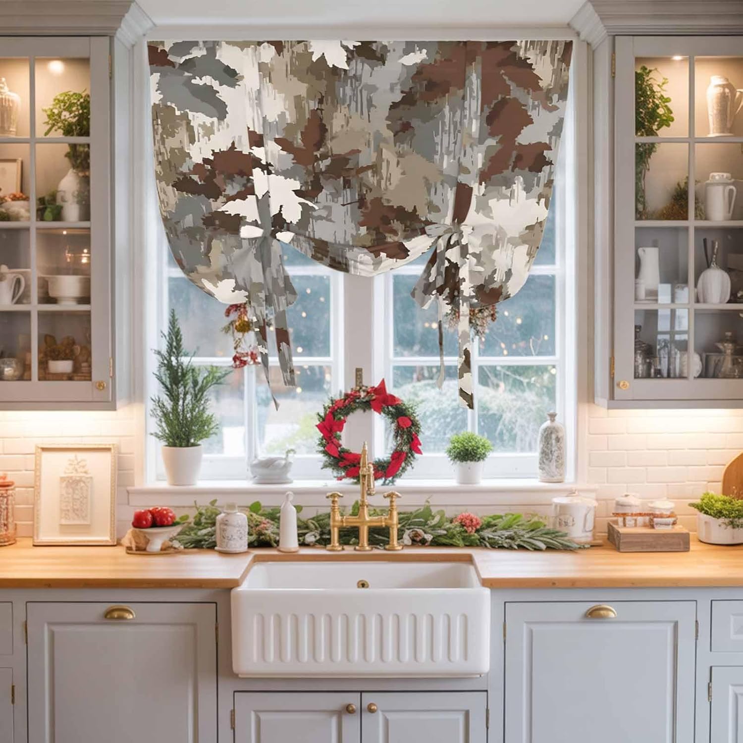 Tie Up Curtains for Windows Specification Material: Polyester Style Options: Abstract, Modern, Rustic, Farmhouse, Retro, Floral, Summer, Ocean, Fall Application Scenes: Kitchen, Bathroom,Office, Bedroom, Living Room Size:35x45 inches/ 42x45 inches/ 42x54 inches / 42x63 inches/ 46x63 inches/ 52x45 inches/ 52x63 inches Package: 1 Panel of Tie Up Curtain Fine Sewing Our blackout tie-up curtains made of quality polyester, the edges are stitched flat and will not loosen, which enhances the durability of the tie up valance and ensures that our curtains will not loosen and last for a long time. Romantic & Luxurious Our pretty bow tie curtain can match with various styles of home decoration to bring your windows a natural look. Multi Hanging Ways Bow Window Curtain Valance Our balloon drapes can be tied at the points where the seams are joined and can be adjusted to your desired height hanging as curtain valance, rod pocket plain curtain, tie up curtain. Great Gift Choice Our window tie up curtains can be given to your family and friends as birthday gifts, graduation gifts, Thanksgiving, Halloween, Christmas, housewarming gifts, wedding gifts, anniversary gifts. Multifunctional Curtain Drapes Our tie up curtains farmhouse can be used as bathroom curtains window, curtain for kitchen, cafe curtains, bedroom curtains, living room curtains, basement valances Easy to Clean 1. Machine washable and hand washable 2. Machine wash in cold water, gentle cycle 3. Tumble dry at low temperature, do not bleach