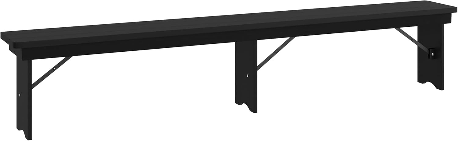 Enhance any home or business with the rustic style of the Flash Furniture Hercules Series Farmhouse 3 Leg Bench. This foldable bench boasts an on-trend, country-rustic design to create the perfect farmhouse atmosphere in any establishment in the heart of your home where family, friends, and guests can come together for delicious food and great conversation. Constructed from solid pine with a 0.75" thick plank top and supportive 2.5" thick apron underneath, this rustic event bench is as durable as it is attractive, making it great for weddings, business meetings, baby showers, or anniversary parties. The rustic farm table is also suitable for daily use in restaurants and hospitality industries and while intended for indoor use, it can be taken outdoors for special events like family get-togethers and backyard barbecues during good weather. With a highly-efficient design, the pins provide maximum stability while in use and can be pulled out to fold the 8.25" wide legs that conveniently lock underneath when you need to move the bench out of the way. The commercial grade folding bench measures 12"W x 96"D x 17.75"H to comfortably seat up to 4 adults, and it can be used as a standalone piece or paired with a table. To keep the rustic farm bench in spotless condition after use or as needed, use a water based cleaner and follow-up with a dry cloth.
