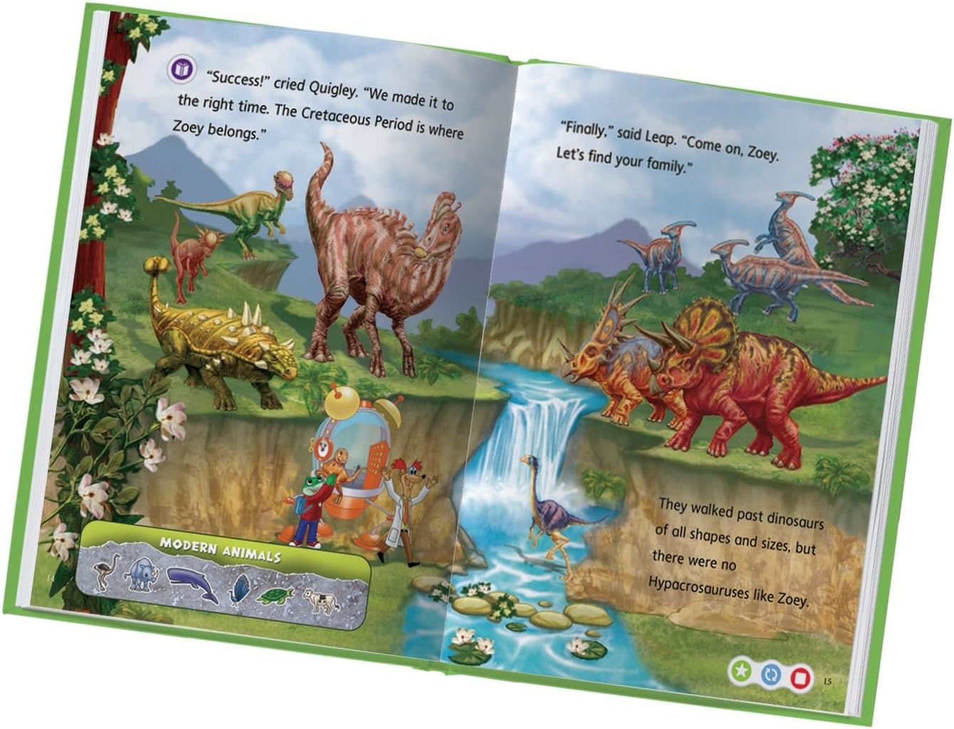 Product Description LeapFrog LeapReader Book: Leap and the Lost Dinosaur (works with Tag) From the Manufacturer Explore the prehistoric world! Meet more than 25 dinosaurs, and discover that science is everywhere as you travel through the eras to bring about a dinosaur family reunion. • Learn about over 25 different dinosaurs • Discover what they liked to eat, when they lived and more! • Get an early introduction to paleontology and fossil classification • Explore the prehistoric time line, from the Triassic to Cretaceous periods • Become a dinosaur expert with 15 interactive playing cards