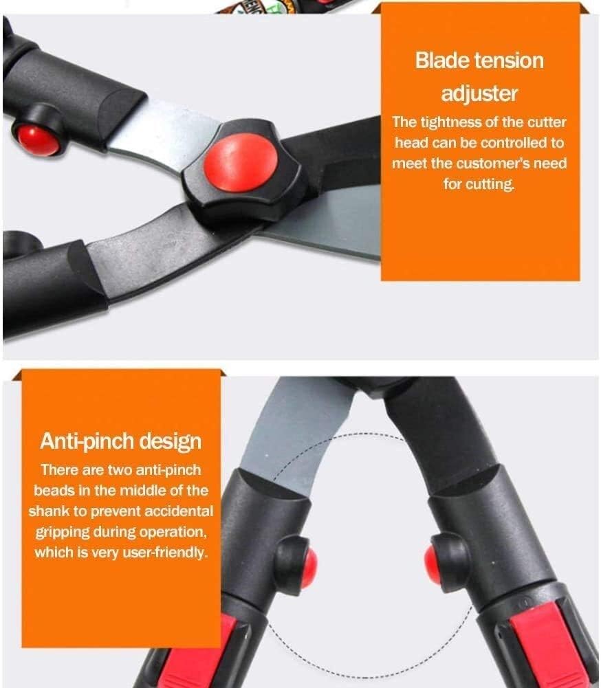 - Have You Had Other Loppers That Take Too Much Effort or Difficult to Use - Are You Fed Up With Garden Loppers That Don't Cut Easily, Blades Bend, Stick or Break Easily Introducing Your Ratchet Telescopic Anvil Loppers – Premium Quality, Built To Last, Less Effort Trimming, More Comfort To Take Care of Your Garden and You What More Could You Ask For…..Yes, You Have a 100% Money Guarantee Too For Peace Of Mind! Name: Telescopic hedge shears Color: black red non-slip plastic handle, gray aluminum handle Opening size: The maximum opening can reach 36cm Length: minimum 660m longest: approx 88cm (total length with cutter head) Weight: about 1080g Material: grip: non-slip plastic handle; handle: aluminum handle; cutter head: SK5 imported tool steel Note: Due to camera, shooting environment, lighting and computer monitors, the picture will be slightly different. Package: Garden Tree Loppers*1
