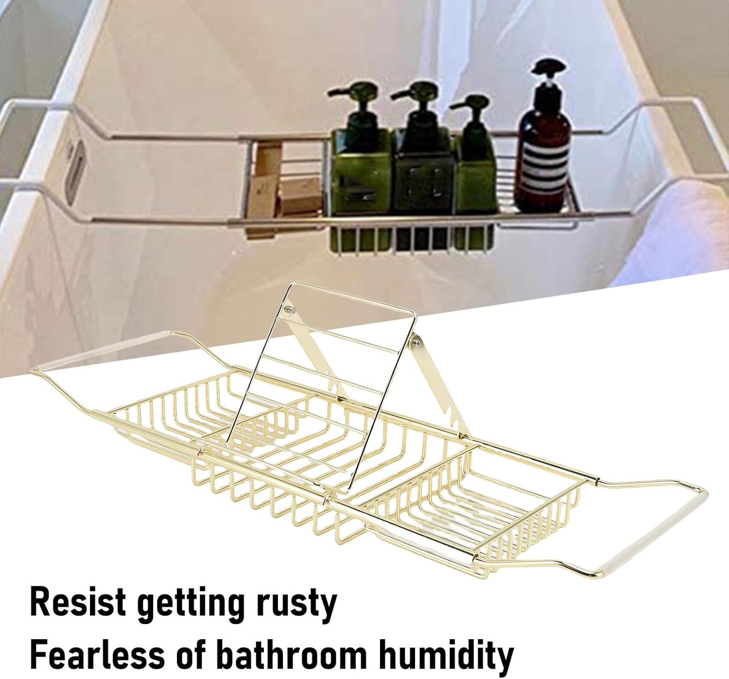 Specification: Item Type: Shower Tub Tray Material: Stainless Steel Weight: Approx. 1630g / 57.5oz Expandable Length: 63.5-97.5cm / 25-38.4in Width: 20cm / 7.9in packing list: 3 x Components 1 x Phone Stand