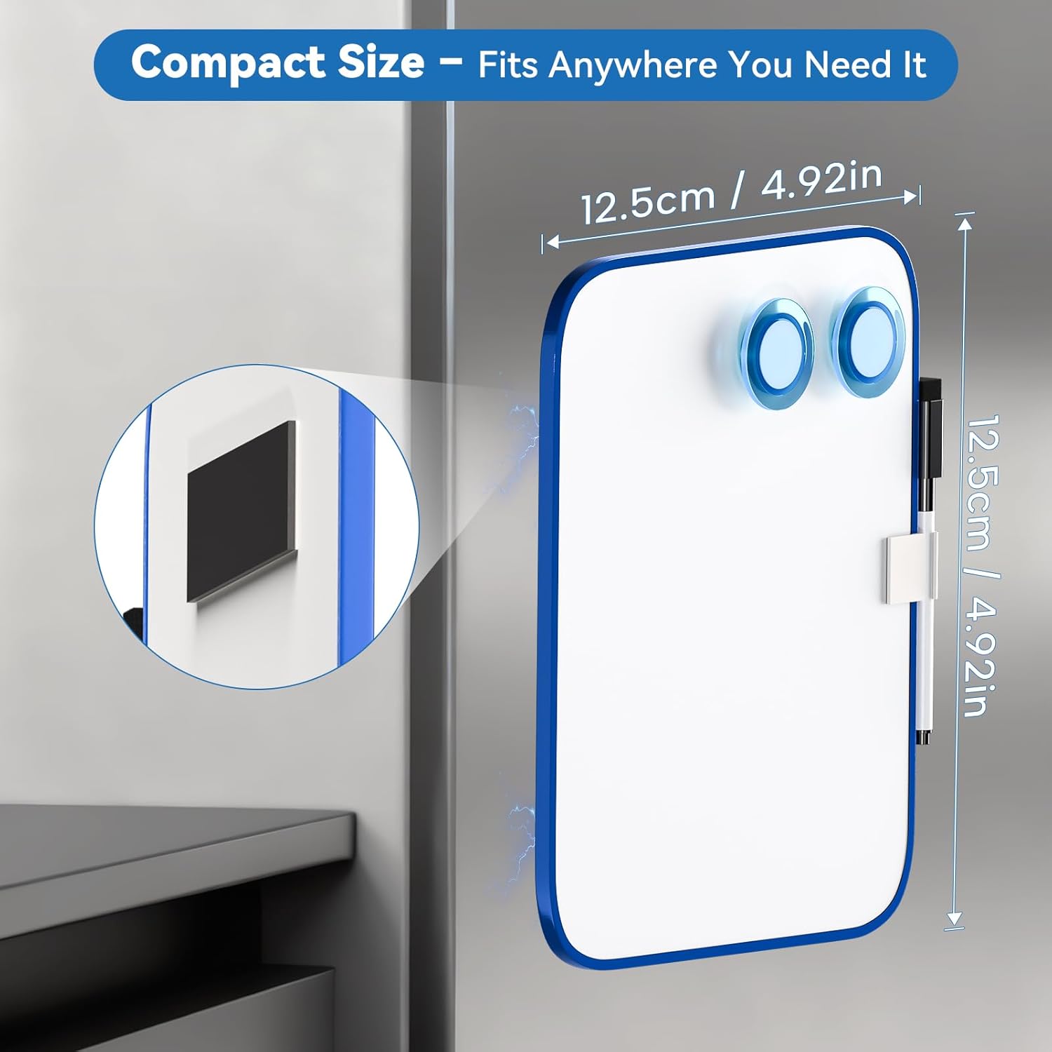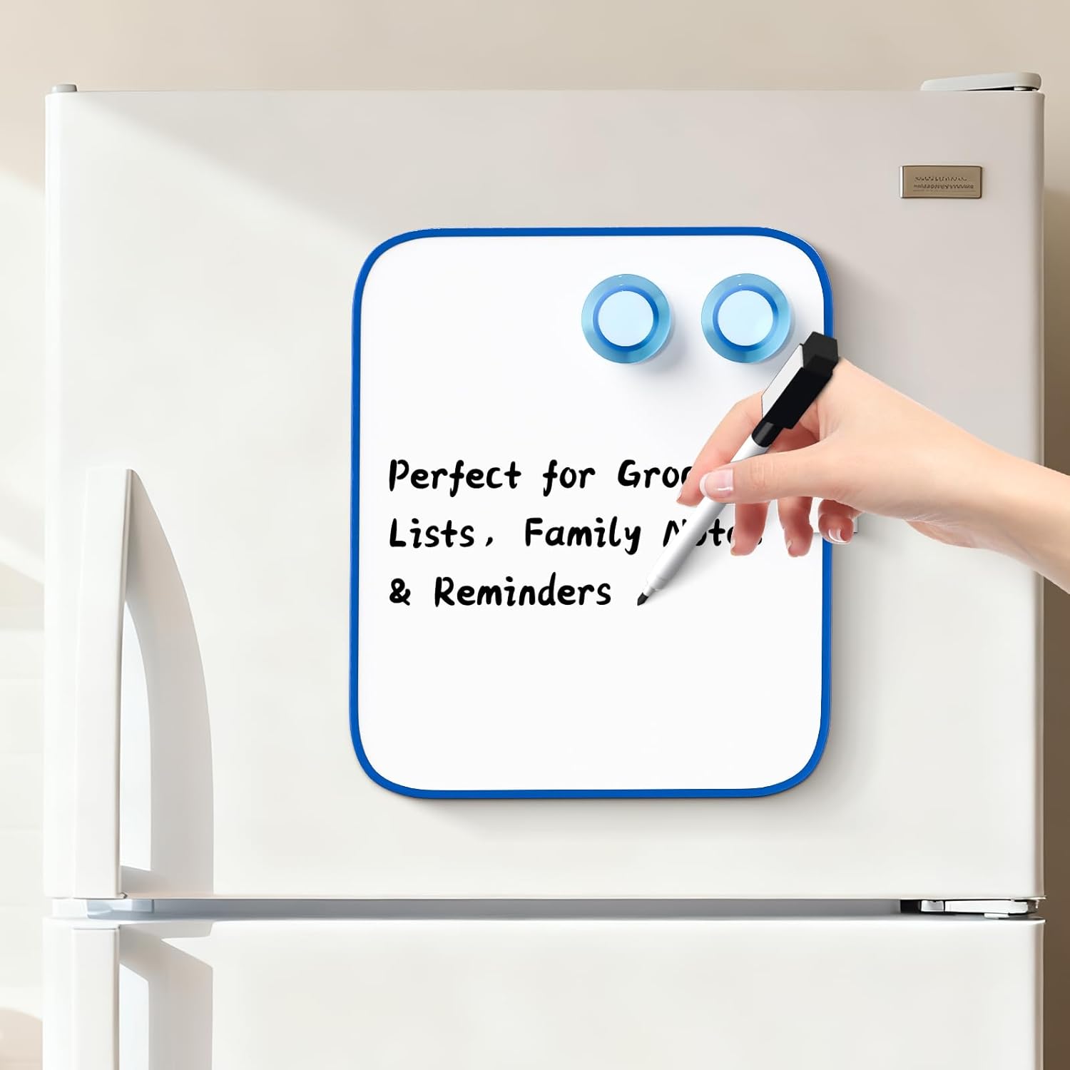 Stay organized and keep track of reminders with this Magnetic Dry Erase Board 6" x 8". Its compact size makes it an excellent fit for school lockers, dorm rooms, refrigerators, or office cubicles. Featuring a sturdy magnetic backing, it attaches securely to metal surfaces without slipping. The set includes a black-framed mini whiteboard, a dry erase marker with an eraser cap, and two strong magnets, giving you everything you need for quick notes, to-do lists, or reminders. The smooth writing surface allows for easy writing and erasing without stains, ensuring long-lasting use. Perfect for students, teachers, or professionals, this mini magnetic whiteboard works as a memo board, study aid, or family message center. Keep your daily schedule, important notes, and ideas always visible with this versatile and convenient whiteboard set.