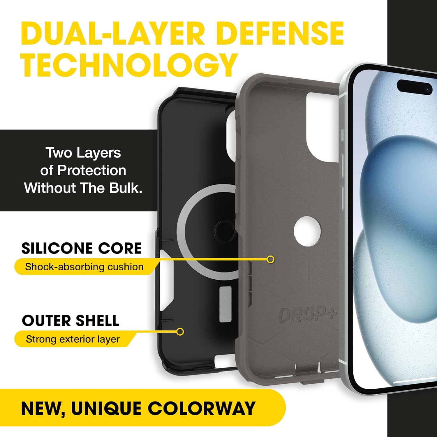 Meet Your Everyday Adventure PartnerYour iPhone is more than a device — it's your camera, wallet, GPS, and connection to everything that matters. The OtterBox Commuter Series is engineered for people who demand protection without compromise.Why Commuter Stands Out:3X Military-Grade DROP+ Testing: Survives 78 drops from 4 feet at multiple anglesDual-Layer Defense System: Shock-absorbing inner silicone paired with a hard polycarbonate outer shellPrecision Port Covers: Designed to help keep out dust, dirt, and moisture while opening smoothly with repeated useWireless Charging Compatible: Works with wireless chargers (no magnets in case) Perfect For:Urban professionals who pocket-carryParents balancing life and devicesAnyone who drops their phone regularlyPeople tired of choosing between protection and style Compatible withiPhone 13iPhone 14iPhone 15iPhone 16e Choose OtterBox. Choose confidence. Choose protection that works when it matters most.