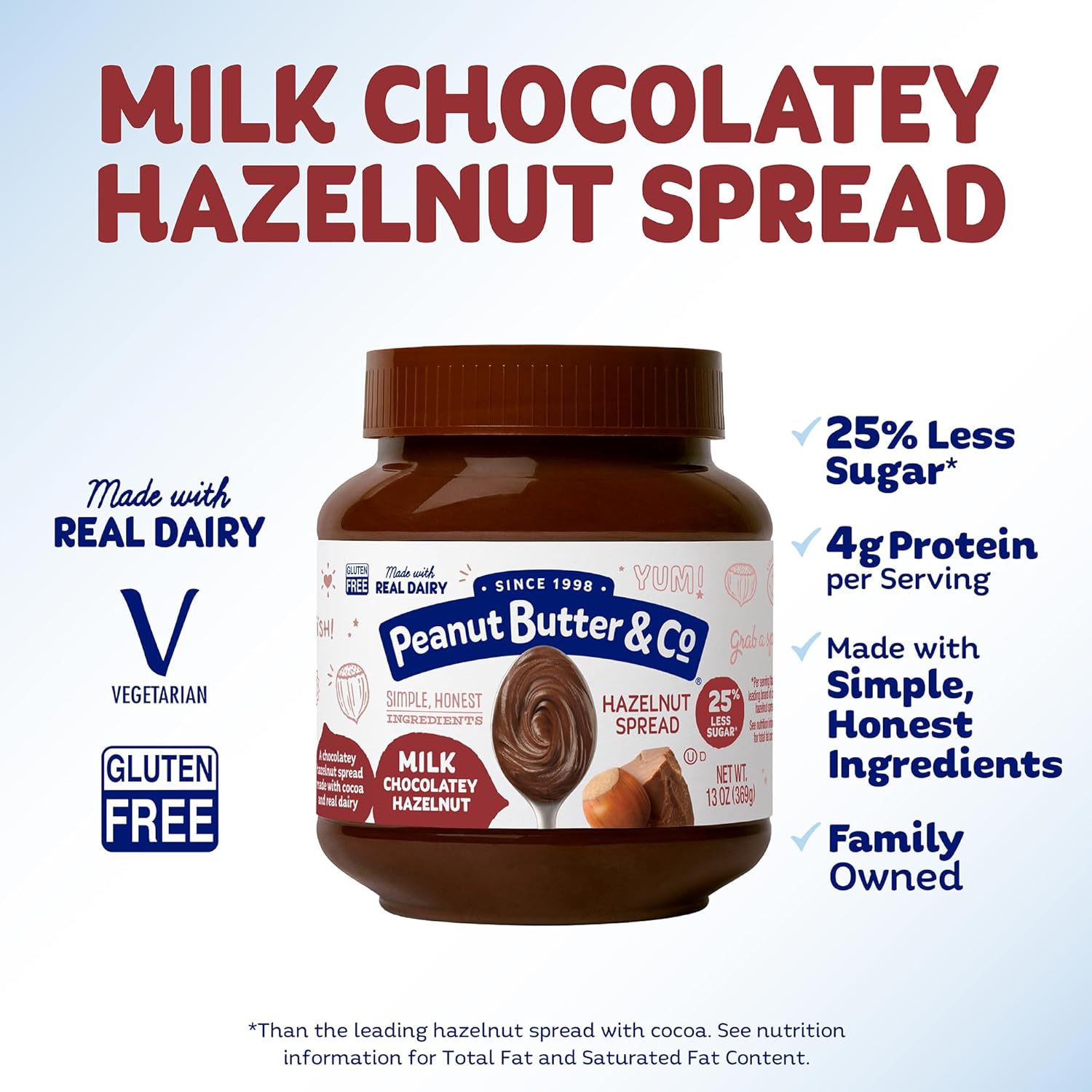 Peanut Butter & Co. Hazelnut Spread, Milk Chocolatey Hazelnut, Gluten Free, 13 Oz (Pack of 6)