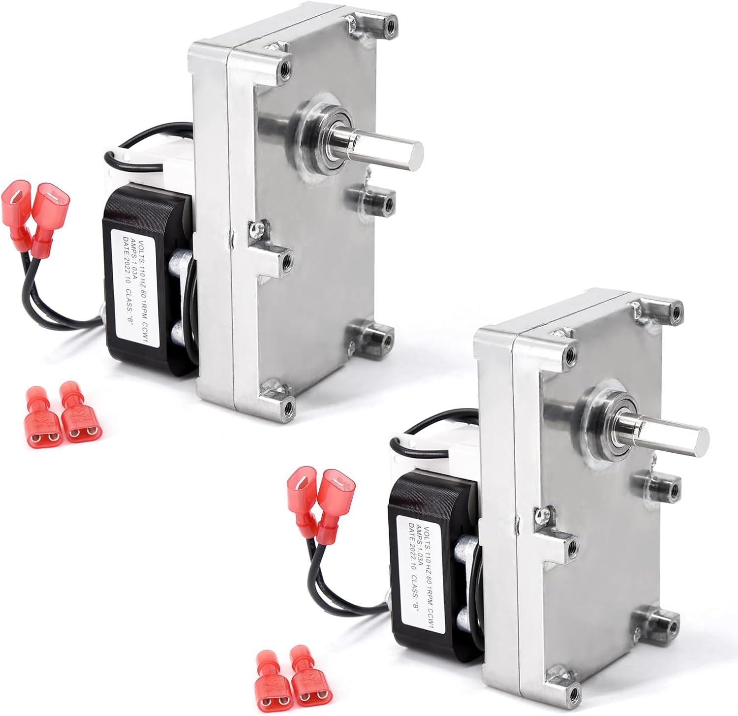 The Englander 1 RPM Counter Clockwise Auger Motor with 3/8" diameter shaft, is an excellent replacement for Englander pellet stove. Not all stoves use the same connection type, if your unit needs different female/male spade clips, these can be removed and changed out.Fits the following models:➤ Englander Pellet Stoves:◆ 25-PDVC, 55-SHP10, 55-SHP10L, 55-TRP10◆ 25-PDV, 55-SHP22, 55-TRP22◆ 10-CPM, 49-SHCPM, 49-TRCPM◆ 25-CAB80, 55-SHPCAB80, 55-TRPCAB80◆ 25-PAF, 55-SHP25, 55-TRP25◆ 25-PDVE, 55-SHP22E◆ 25-PDVP, 55-SHP15, 55-TRP15◆ 25-PFS, 25-PFSP◆ 25-PI, 55-SHP20, 55-TRP20Technical Specifications:★ Volts: 120 V★ Amps: 1.03 A★ Cycles: 60 Hz★ RPM: 1.0★ Direction: Counter Clockwise★ Wire Length: 20" with ¼" Male and Female TerminalReplacement for Part Number:PU-047040May fit other models, please check your owner's manual for part number compatibility.