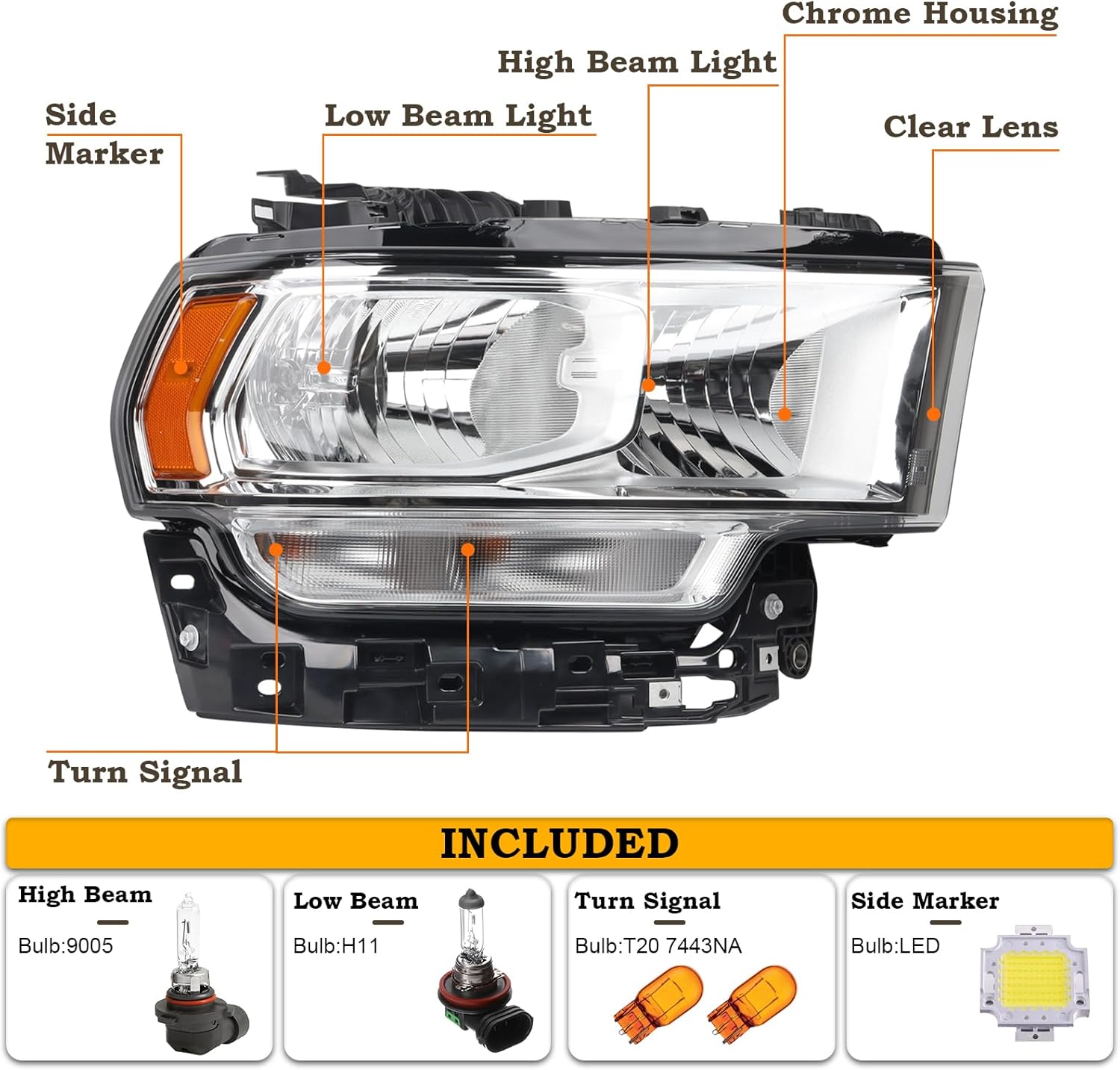 | Color | Chrome Halogen Right Passenger Side |