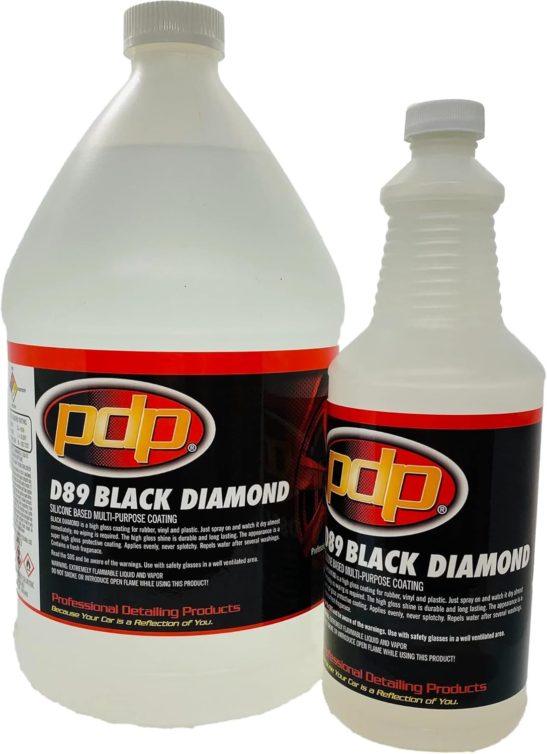 BLACK DIAMOND offers a high-gloss protective coating for rubber, vinyl, and plastic. Simply spray it on and let it dry quickly without wiping. It provides a durable, long-lasting shine that applies evenly in a single pass, never leaving splotches. This coating effectively repels water through multiple rainstorms.