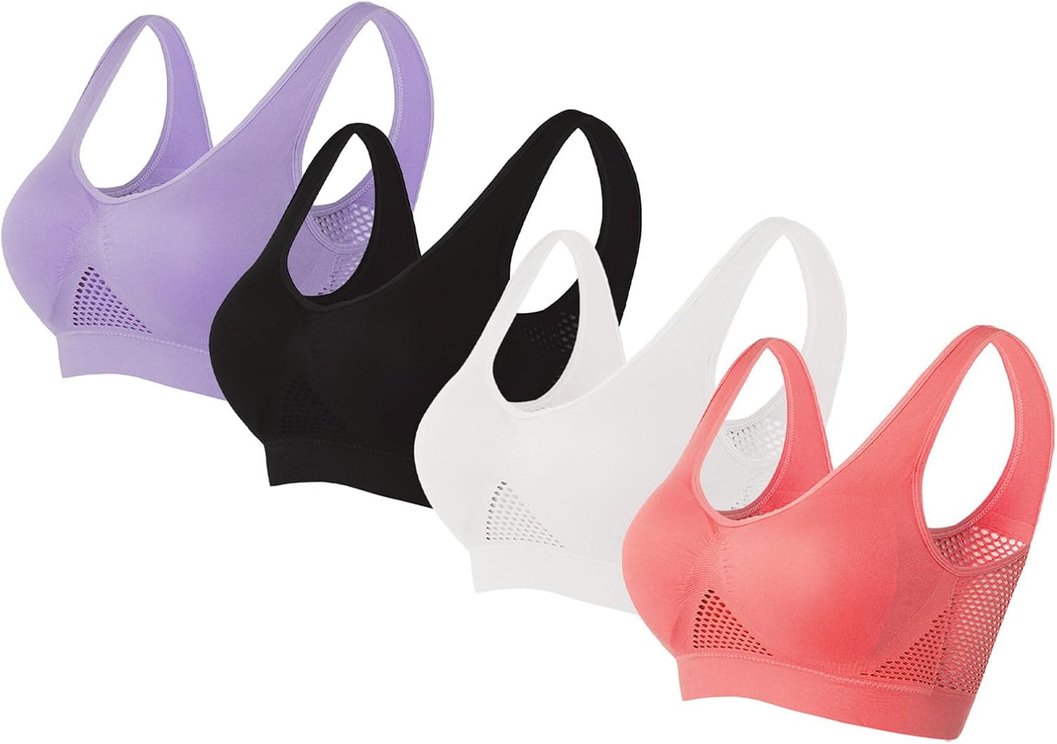 All-Day Comfort Versatility: Ultra-soft compression fabric creates a seamless, breathable fit perfect for yoga, gym sessions, or daily wear. Features T-back and racerback designs for maximum mobility without chafing.Inclusive Plus Size Fit: Specifically designed for women’s fuller figures with extended sizing. Always follow our comprehensive Size Chart to ensure perfect, comfortable compression.Multi-Pack Durability: High-quality fabric maintains shape and elasticity wash after wash. This sports bra pack offers long-lasting value - ideal for rotation between workouts.Effortless Care Instructions: Simply hand wash in cool water to preserve padding integrity and color vibrancy. Quick-drying material ensures ready-to-wear convenience.
