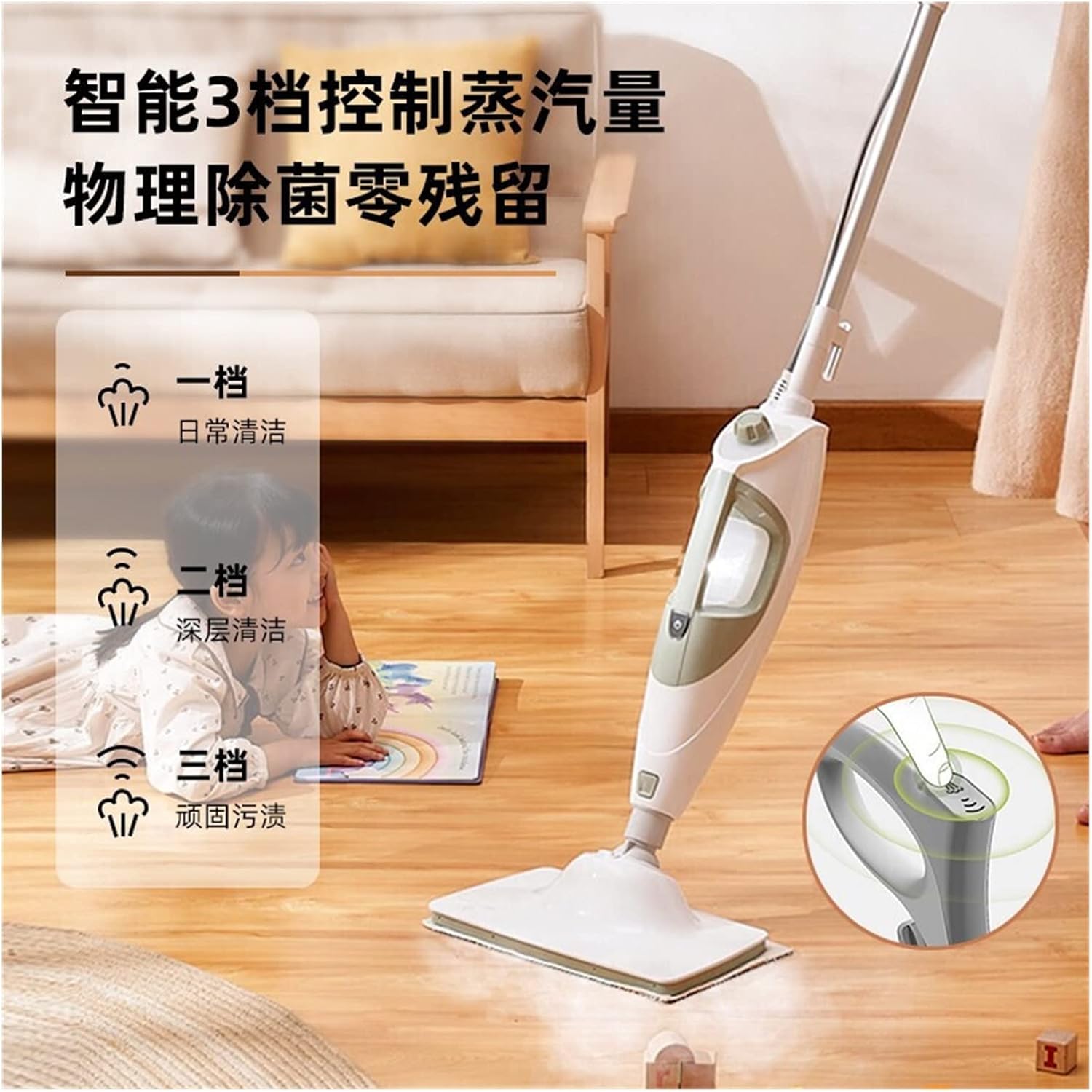 Rated frequency : 50HzSwitch Type : Handle SwitchWater tank capacity: 301ml-500mlWarm-up time: 1 minute or lessContinuous steam time : 21-25 minutesChassis shape: rectangleIs there a steam adjustment function: yesColor : Dark GreenProduct Category : Steam MopBattery life: less than 45 minutesHeating temperature : Above 151℃Heating time : 0-30SSuction: ≤100AW