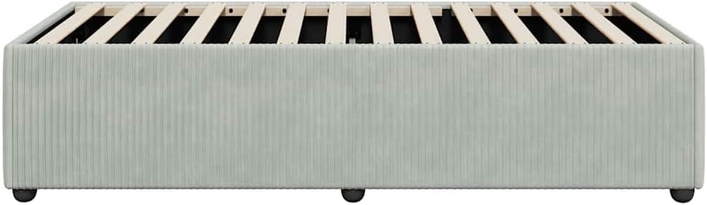 This light grey twin XL velvet bed frame combines modern style with everyday practicality, making it a top-notch addition to any bedroom. Its plush velvet fabric not only looks fab but also feels lovely, creating a cozy atmosphere for a good night's sleep.Trendy Look: The bed frame has a modern rectangular style that blends in perfectly with various bedroom vibes, especially sleek and minimalist spaces. This visual harmony enhances the decor, adding tons of style.Robust Build: Made with top-notch velvet and plywood, this frame is built to last. Its solid construction ensures it can handle daily use, making it a smart buy for your bedroom.Soft Material: The luxurious velvet fabric feels amazing against your skin, creating a relaxing environment for rest. This attention to quality material guarantees a cozy space for all your snoozing needs.Easy to Set Up: The bed frame is designed for simple assembly, so you can get it ready in no time. You just need basic tools and a bit of elbow grease, making it an easy choice for anyone wanting to enhance their space.Smart Dimensions: The bed frame's size is just right for smaller rooms or guest spaces, letting you make the most out of your area while still providing a comfy place to sleep.Color: Light Grey Shape: RectangularMaterial: Fabric VelvetFinish: Matte Indoor/Outdoor: Indoor OnlyCover Included: NoRoom: BedroomMaximum Number of People: 1Mounting Included: NoDimensions: 15.5 x 31.5 x 7.1 in. (W x L x H)Surface Height: 15.7 in.Leg Height: 2.4 in.Swings: NoAssembly Required: YesRecommended Number of People for Assembly: 2
